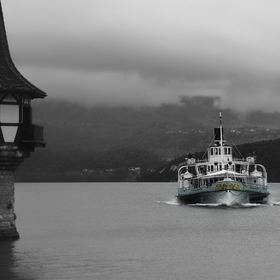 http://art.hess.photography/100-quartett.html - Realisiert mit Pictrs.comPursuit | DS Blümlisalp scheint auf ihrer Neujahrsfahrt ein Segelschiff zu verfolgen, unterstütz von einer unheilschwangeren Wolkendecke.