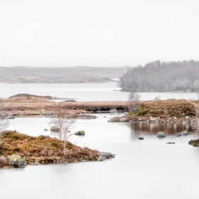 , see, winter, landscape … loch ba im winternebel, schottland … weite winterlandscha
